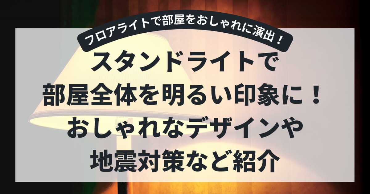 部屋全体を明るい印象にできるスタンドライトについて、地震対策も含めて紹介していきます。
